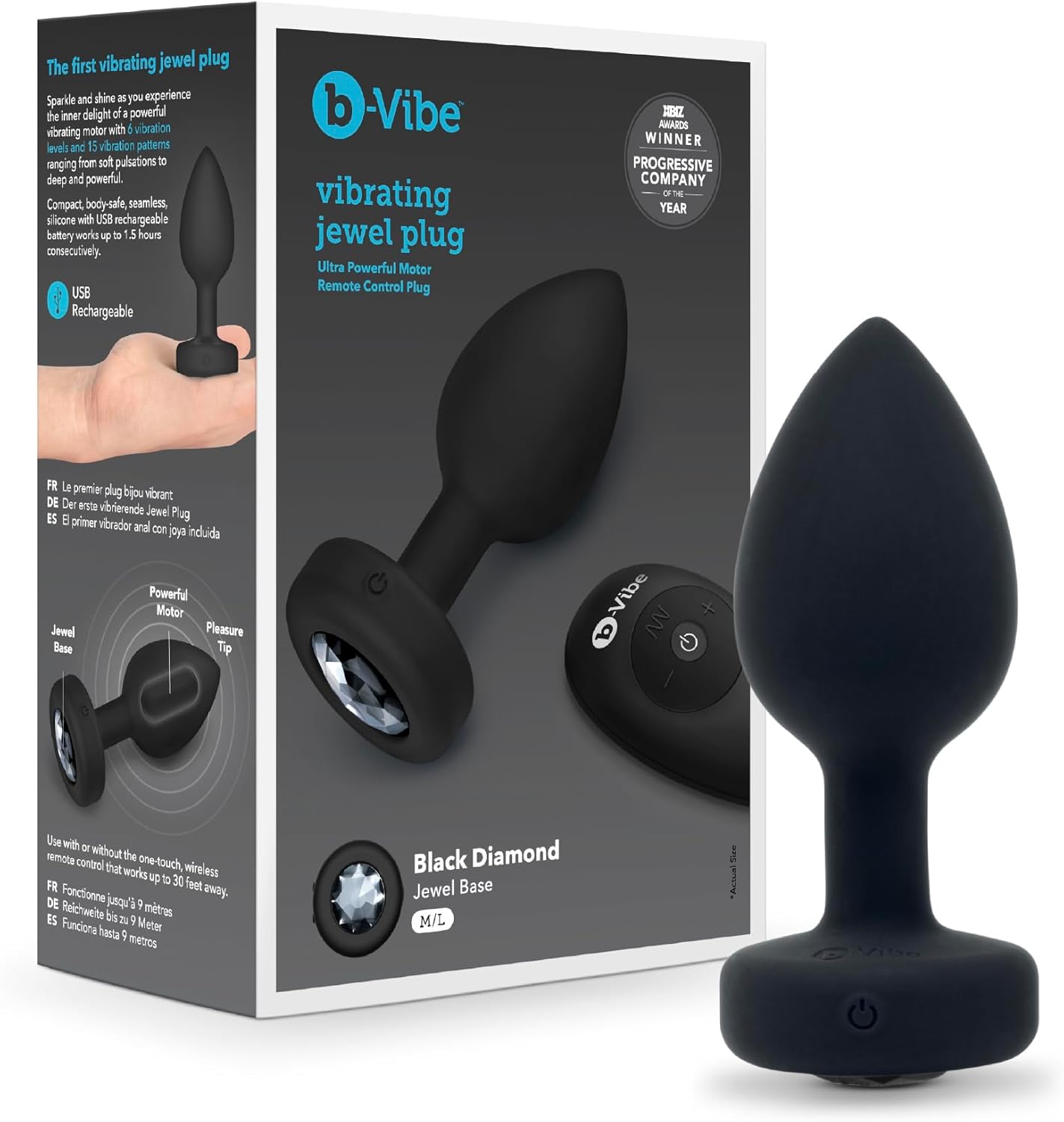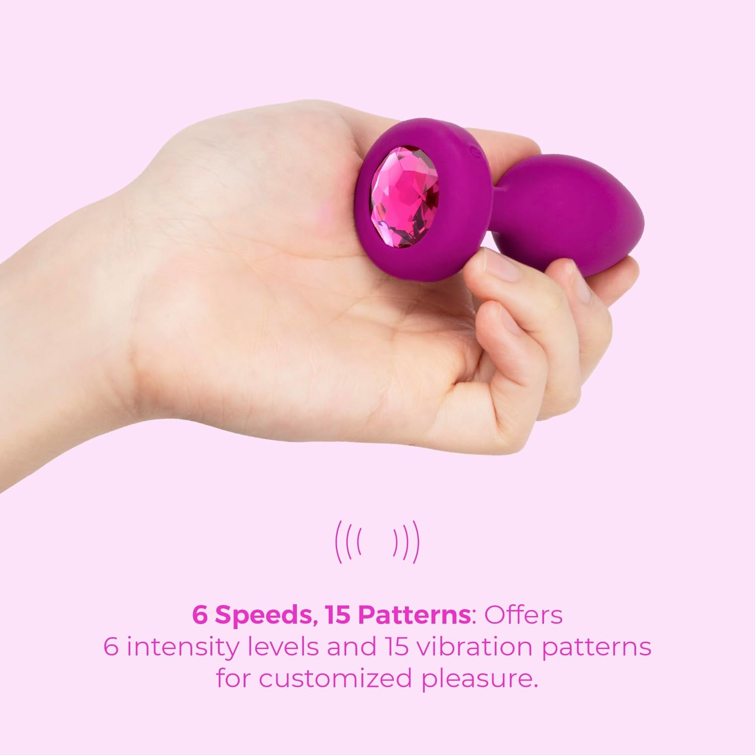 Sparkle and shine as you experience the inner delight of a powerful vibrating motor with 6 vibration levels and 15 vibration patterns ranging from soft pulsations to deep and powerful. Compact body-safe seamless silicone with USB rechargeable battery works up to 1.5 hours consecutively. Details: Powerful motor with 15 vibration patterns Rounded edge for easy insertion Thin .5" flexible neck Comfortable smooth-grip handle with jewel base Diameter: 1.45" (3.7 cm) Overall length: 3.85" (9.8 cm) Includes: Vibrating Jewel Plug S/M Antibacterial Travel Bag USB Cord Guide to Anal Play User Guide