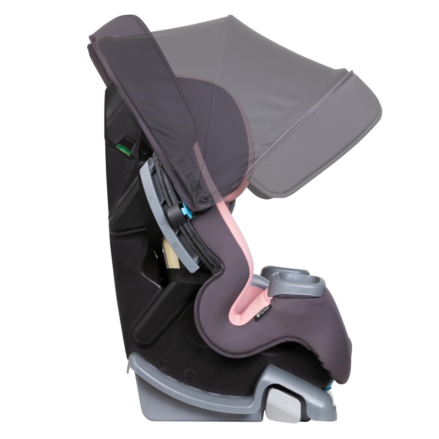 Introducing the Baby Trend Cover Me™ 4-in-1 Convertible Car Seat! In our study involving 400+ moms currently using convertible car seats, the #1 complaint about their convertible is children irritated by sunlight in the cars. The Cover Me™ has an integrated patented height and angle adjustable UPF 50+ canopy for full in-car shade protection. The canopy is integrated and attached on a built-in track so it's easy to adjust and remove. Flip-out side visors provide extra shade protection for kids when the car is in motion and the sunlight's coming from multiple directions. Built with premium and deluxe fabric and materials, the Comfort Cabin Seat offers extra padding to keep your child comfortable on a long ride. Two deep cup holders also allow children to place their sippy cups and snacks within reach. The integrated headrest with no rethread harness offers ultra-convenience for parents when adjusting the headrest position. With the zero radius recline, plus flip foot for dual recline adjustment, parents can easily adjust the seat and recline in the car. Finally, the Cover Me can hold a child from 4 – 100lb with four unique modes: Rear facing infant, rear facing toddler, forward facing toddler and belt positioning booster.